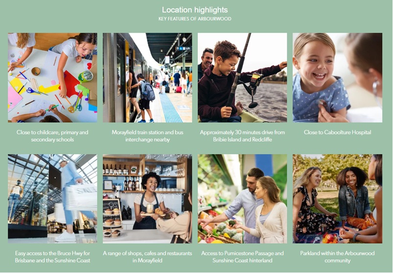 This community will be home to 210 residential homes, all within easy walking distance to a leafy park within the development. Arbourwood is the ideal place for your family to grow surrounded by nature. Morayfield State School: 5 minutes | Westfield Northlakes: 15 mins | Caboolture: 11 mins | Brisbane CBD: 48 mins